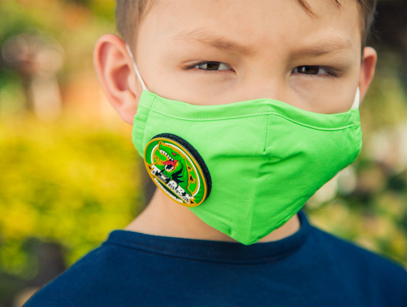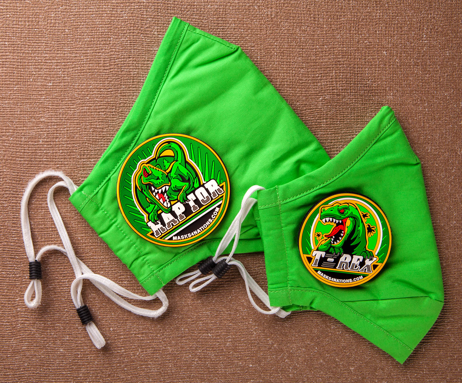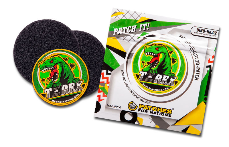 Die Dino-Patches haben eine Größe von 5cm im Durchmesser. Damit passen sie auf jedes Cap, jede Maske oder jeden Tornister.